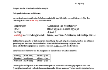 Die Schulbuchlisten und Informationen zur Schulbuchausleihe stehen hier zur Verfügung.